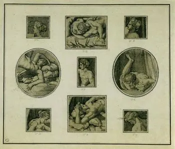 During the Italian Renaissance, Marcantonio Raimondi and Giulio Romano collaborated to create the erotic book “I Modi,” which would become famous (and infamous) for the 16 detailed engravings of sex scenes featured within it.